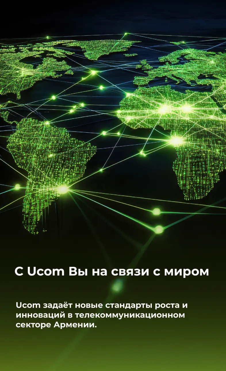 Являясь лидером отрасли и самым быстрорастущим оператором связи в Армении, Ucom предоставляет высококачественную фиксированную и мобильную связь, а также современные услуги телевидения и медиа.