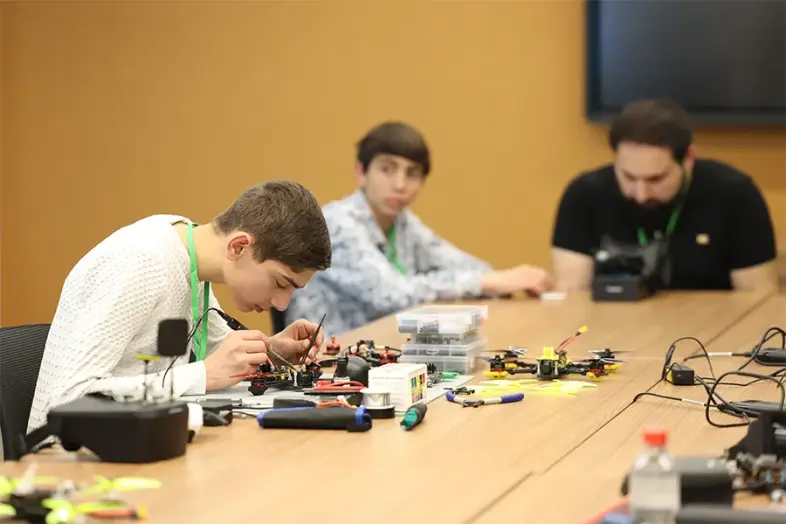 Уже второй год подряд благодаря бесплатным курсам, реализуемым при поддержке Ucom, десятки подростков получают знания в сфере БПЛА, развивая свое технологическое мышление и навыки. Участники знакомятся с современными технологиями беспилотных летательных аппаратов, основами инженерного мышления и особенностями FPV-дронов. Они получают как теоретические, так и практические знания о механической конструкции БПЛА, настройке программных и полётных параметров, соблюдении правил безопасности, а также изучают соревновательные стратегии и приобретают соответствующие навыки.