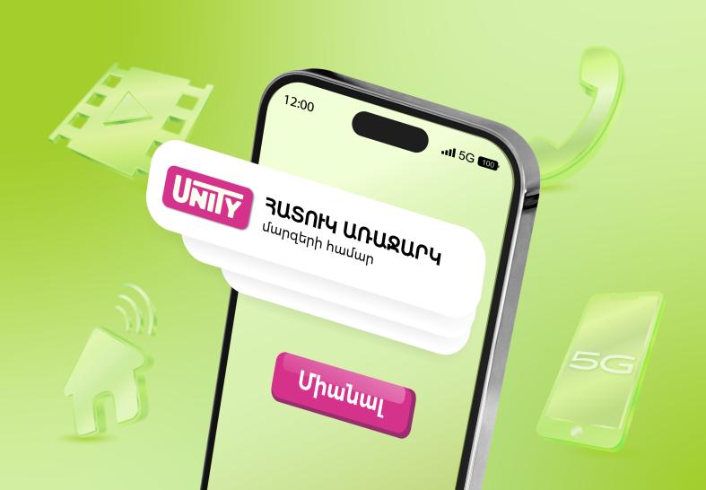 Специальное предложение для регионовДо 31/12/2025 абоненты из городов Горис, Гавар, Иджеван, Севан, Арташат, Нор Ачн, Бюрегаван, Аштарак и села Джрвеж, оформив подписку на региональные пакеты Unity на 12 месяцев, получат 3 месяца бесплатно.